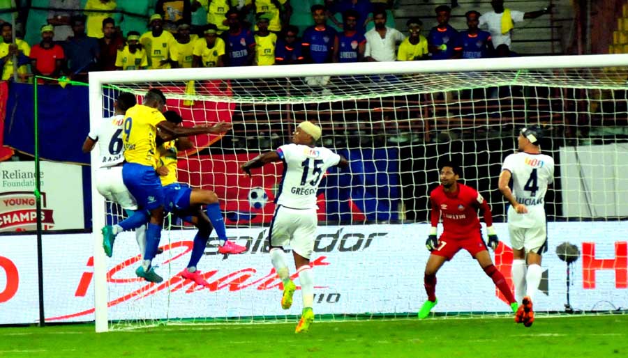 ആദ്യപകുതിയില് തകര്പ്പന് പാസുകളുമായി ആക്രമിച്ചു കളിച്ചത് ആതിഥേയരാണെങ്കിലും ഗോള്വല കുലുക്കാനായില്ല. ഗോളടിച്ച നിമിഷമൊഴികെ ഗോവക്കാര് ബ്ളാസ്റ്റേഴ്സ് ഏരിയയിലേക്ക് കടന്നതേയില്ല. മഞ്ഞപ്പടയുടെ ഗോളി സ്റ്റാക്കിന് ബാറിനു കീഴില് ബോറടിച്ചു. നാലു കോര്ണര് കിക്കുകളും മഞ്ഞപ്പടക്ക് സഹായമേകിയില്ല. മൂന്നാം മിനിറ്റില് ഹോസുവിന്െറ ഫ്രീകിക്കില് നിന്നുള്ള പന്ത് ഗോവന് ബോക്സിലത്തെിയെങ്കിലും അര്നോലിന് അകറ്റി. പിന്നാലെ നൃത്തച്ചുവടുകളോടെ ബെല്ഫോര്ട്ട് പന്തുമായി മുന്നേറി നല്കിയ ക്രോസ് റാഫിയുടെ കാലിലത്തെുംമുമ്പേ അകന്നുപോയി. എന്നാല്, പ്രത്യാക്രമണത്തിലൂടെ ഗോവക്കാര് വലകുലുക്കി. റിച്ചാര്ലിസണിന്െറ ഫ്രീകിക്കിന് തലവെച്ച കൊയ്ലോ പന്ത് ഗോളിലത്തെിച്ചു. ഗോളി ഗ്രഹാം സ്റ്റാക്കിന്െറ കാലിനിടയിലൂടെയാണ് പന്ത് വലയിലേക്ക് ഉരുണ്ടത്. ഗോവയിലെ മത്സരത്തില് ബ്ളാസ്റ്റേഴ്സിനെതിരെ ജൂലിയോ സെസാര് നേടിയ ഗോളിന്െറ ഫോട്ടോസ്റ്റാറ്റായിരുന്നു ഈ ഗോള്. അന്നും റിച്ചാര്ലിസണായിരുന്നു സഹായിച്ചത്. ഫട്ടോര്ഡയിലെപ്പോലെ ഹൈബോള് പ്രതിരോധിക്കാനാവാതെ ബ്ളാസ്റ്റേഴ്സ് പ്രതിരോധത്തില് ഹോസു കാഴ്ചക്കാരന് മാത്രമായി.