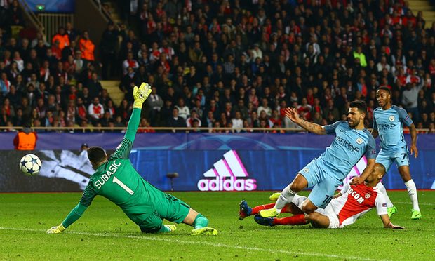 സ്വന്തം തട്ടകത്തിൽ നടന്ന ആദ്യ പാദത്തിൽ മാഞ്ചസ്റ്റർ സിറ്റി അഞ്ചു ഗോൾ അടിെച്ചങ്കിലും വഴങ്ങിയത് മൂന്നു ഗോളുകളാണ്. ആ കളിയിൽ തിളങ്ങിയ െമാണാകോയുടെ ഗോളടിവീരൻ ഫാൽകാവോ പരിക്കുകാരണം രണ്ടാം പാദത്തിൽ ഇറങ്ങിയിരുന്നില്ല. തുടക്കംമുതലെ ആക്രമിച്ചുകളിച്ച മൊണാകോ എട്ടാം മിനിറ്റിൽ തന്നെ ലോട്ടിനിലൂടെ ആദ്യ ഗോൾ നേടി. 29ാം മിനിറ്റിൽ ബ്രസീൽ താരം ഫാബിയാേനാ രണ്ടാം ഗോൾ നേടിയതോടെ തിരിച്ചുവരവിെൻറ സൂചനകൾ മൊണാകോ നൽകിയിരുന്നു. എന്നാൽ 71ാം മിനിറ്റിൽ സാനെ സിറ്റിക്കായി തിരിച്ചടിച്ചതോടെ സ്കോർ 6-5 ആയി സന്ദർശകർ ഉൗർജം ആവാഹിച്ചു. എന്നാൽ സന്തോഷത്തിന് ദീർഘായുസുണ്ടായിരുന്നില്ല. 77ാം മിനിറ്റിൽ ഫ്രീകിക്ക് ഷോട്ട് ഹെഡറിലൂടെ ബകായാകോ ഗോളാക്കിമാറ്റി തിരിച്ചടിച്ചു. സമനിലകൊണ്ട് ക്വാർട്ടറിൽ പ്രവേശിപ്പിക്കുമെന്ന് മനസ്സിലാക്കിയ മൊണാകോ പ്രതിരോധം കനപ്പിച്ചതോടെ സിറ്റിയുടെ മുന്നോട്ടുള്ള പ്രയാണം അവസാനിച്ചു.