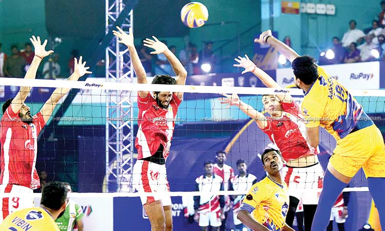 ജെറോം വിനീതിെൻറ സ്മാഷോടെ കാലിക്കറ്റ് 15-8ന് ഒന്നാം സെറ്റ് സ്വന്തമാക്കി. രണ്ടാം സെറ്റില് ജെറോം വിനീത് തകര്പ്പന് സര്വും സ്മാഷുമായി എതിരാളികളെ തുടക്കത്തില് തന്നെ സമ്മര്ദത്തിലാക്കി. പരിചയസമ്പന്നനായ മലയാളി സെറ്റര് കെ.ജെ. കപില്ദേവിനും പിഴച്ചതോടെ ചെന്നൈ തീര്ത്തും നിറംമങ്ങി. ഇതിനിടെ, സൂപ്പര് പോയൻറ് വിളിച്ച ഇരുടീമിനും രണ്ടു പോയൻറ് എതിരാളികള്ക്ക് വിട്ടുകൊടുക്കേണ്ടിവന്നു. കിഴക്കുഭാഗത്തെ ഗാലറി നിറഞ്ഞ ചെമ്പടയുടെ ആരാധകര്ക്ക് ആവേശമേകി, ‘ഹൈഡ്രജന് ബോയ്’ അജിത് ലാലിെൻറ ഫിനിഷിങ്ങോടെ രണ്ടാം സെറ്റും കോഴിക്കോടിെൻറ വഴിയിലായി (15-8).