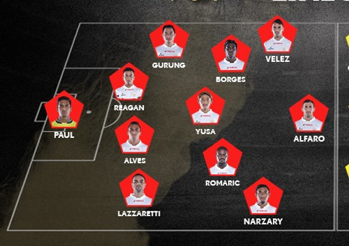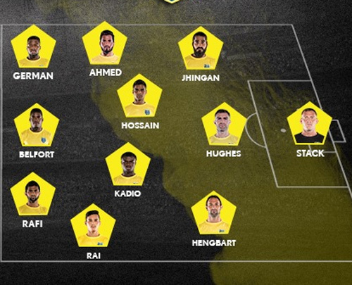 പ്രതിരോധം: മെയ്ല്സണ് ആല്വെസ്, ഗുസ്താവോ ലാസറേറ്റി, റീഗന് സിങ്, റോബിന് ഗുരുങ്, നിര്മല് ഛേത്രി, സലാം രഞ്ജന് സിങ്, ശൗവിക് ഘോഷ്.
