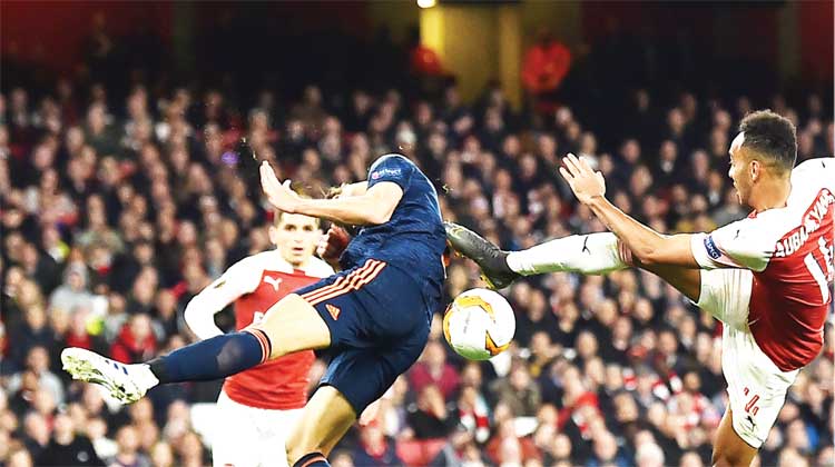 മിനിറ്റ് കഴിഞ്ഞ് ബാക്പോസ്റ്റിൽ ഷാക നൽകിയ ക്രോസിന് ലക്കാസെറ്റ് തലവെച്ചപ്പോൾ വലൻസിയ ഗോളി നെറ്റോ തടുത്തിെട്ടങ്കിലും ഗോൾലൈൻ കടന്നതോടെ റഫറി ഗോൾ അനുവദിക്കുകയായിരുന്നു. തിരിച്ചുവരാൻ വലൻസിയ നടത്തിയ എല്ലാ ശ്രമങ്ങളെയും തച്ചുടച്ച് ലക്കാസെറ്റും സംഘവും നടത്തിയ തുടർ ആക്രമണങ്ങളുടെ പൂർത്തിയെന്നോണമാണ് 90ാം മിനിറ്റിൽ മൂന്നാം ഗോൾ എത്തിയത്. ലക്കാസെറ്റ് അടിച്ച ഷോട്ട് നെറ്റോ തടഞ്ഞിെട്ടങ്കിലും എത്തിയത് ആഴ്സനൽ നിരയിലെ കൊലാസിനച്ചിെൻറ കാലുകളിൽ. അദ്ദേഹം നൽകിയ ക്രോസ് ഒബാമയാങ് അനായാസം ഗോളാക്കി മാറ്റി. പിന്നെയും ആഴ്സനൽ നിരന്തരം ആക്രമണം നടത്തിയെങ്കിലും നിർഭാഗ്യത്തിന് വഴിമാറി. ജയത്തോടെ, വലൻസിയയുടെ മൈതാനത്ത് നടക്കുന്ന സെമി രണ്ടാം പാദ മത്സരം ടീമിന് എളുപ്പമായി.