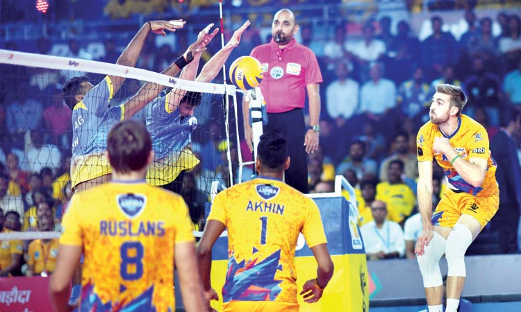 ഉക്രപാണ്ഡ്യനും പ്രഭാകരനും അവസരത്തിനൊത്തുയരാതിരുന്നത് നീലപ്പടക്ക് ക്ഷീണമായി. നിറഞ്ഞ ഗാലറിയുടെ ആരവങ്ങളിൽ പോരാടിയ ചെന്നൈയെ അഖിനും റസ്ലാനും തോളിലേറ്റി. 6-9 എന്ന നിലയിൽ അവർ ലീഡ് പിടിച്ചെങ്കിലും ലീ തിരിച്ചെത്തിച്ചു. അതേസമയം, മനുവിനെ മാർക്ക് ചെയ്ത ആതിഥേയ തന്ത്രം വിജയംകണ്ടു. സൂപ്പർ പോയൻറ് ജയിച്ച് 11-10ന് കൊച്ചി മുന്നേറിയെങ്കിലും അടുത്ത നിമിഷം സൂപ്പർപോയൻറിലൂടെതന്നെ ചെന്നൈ (11-12) മുന്നിലെത്തി. പിന്നെ തുടരൻ സ്പൈക്കുകളിലൂടെ പോയൻറുകളും വാരിക്കൂട്ടി. 15-13ന് ചെന്നൈ ഫൈനലിലേക്ക്.