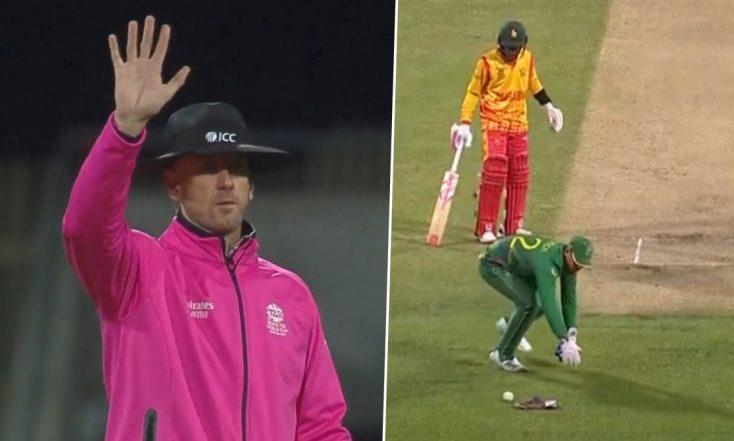 അതിനിടെ ആദ്യം ബാറ്റ് ചെയ്ത സിംബാബ്വെക്ക് അഞ്ച് റൺസ് പെനാൽറ്റിയായി ലഭിച്ചിരുന്നു. ഒമ്പതാം ഓവറിലായിരുന്നു സംഭവം. ഓവറിലെ മൂന്നാമത്തെ പന്ത് സിംബാബ്വെ താരത്തിൻ്റെ ബാറ്റിൽ എഡ്ജ് ചെയ്ത് തേർഡ് മാനിലേക്ക് പാഞ്ഞു, പന്ത് കയ്യിലെടുത്ത എൻകിഡി വിക്കറ്റ് കീപ്പർ ഡീകോക്കിനെ ലക്ഷ്യമാക്കി ത്രോ ചെയ്യുകയും ചെയ്തു. എന്നാൽ, തൊട്ടുപിന്നാലെ അംപയർ ദക്ഷിണാഫ്രിക്കക്ക് എതിരായി അഞ്ച് റൺസ് പെനാൽറ്റി വിളിച്ചു. കളിക്കാർ അന്തംവിട്ട് നിൽക്കവേ, റീപ്ലേയിൽ കാര്യങ്ങളെല്ലാം വ്യക്തമാവുകയായിരുന്നു.