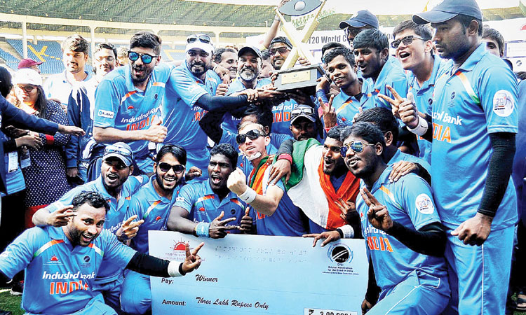 ബൈ്ളന്ഡ് ക്രിക്കറ്റ് ട്വന്റി20 ലോകചാമ്പ്യന്മാരായ ഇന്ത്യന് ടീം കിരീടവുമായി