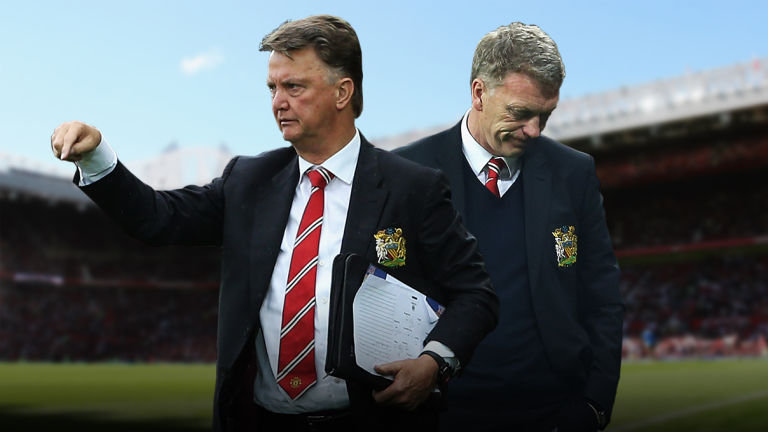 ഫെർഗിയുടെ പടിയിറക്കത്തിന് ശേഷം പിൻഗാമിയായി എത്തിയത് സകോട്ട്ലൻറ്കാരനായ ഡേവിഡ് മോയസായിരുന്നു. മാഞ്ചസ്റ്റിന് തൊട്ടതെല്ലാം പിഴച്ച 2013-2014 സീസണിൽ 64 പോയൻറുമായി യുണൈറ്റഡ് ഏഴാം സ്ഥാനക്കാരായാണ് ഫിനിഷ് ചെയ്തത്. 1989-1990 സീസണുശേഷം ആദ്യമായാണ് യുണൈറ്റഡ് ചാമ്പ്യൻസ് ലീഗിന് യോഗ്യതനേടാതെ പോയത്. ഡേവിഡ്മോയസിൻറെ കീഴിൽ മുടന്തിക്കളിച്ച യുണൈറ്റഡ് എഫ്.എ കപ്പിൽ മൂന്നാം റൗണ്ടിലും ചാമ്പ്യൻസ്ലീഗിൽ ക്വാർട്ടർഫൈനലിലും പരാജിതരായി മടങ്ങി. സീസൺ അവസാനിക്കാൻ നാലു മത്സരം ബാക്കിയിരിക്കെ എവർട്ടണോട് രണ്ടുഗോളിന് പരാജയപ്പെട്ടതോടെ മോയസിനെ പുറത്താക്കി റയാൻ ഗിഗ്സീന് പകരം ചുമതല നൽകി മാനേജ്മെൻറ് തടിതപ്പുകയായിരുന്നു. മോയസിന് പകരം ഏറെ പ്രതീക്ഷയേടെ ഡച്ചുകാരൻ ലൂയീസ് വാൻഗാലിനെ കൊണ്ടുവന്നെങ്കിലും വലിയ ചലനമൊന്നും സൃഷ്ടിക്കാനായില്ല. 2014-15 സീസണിൽ നാലാം സ്ഥാനാക്കാരായി സീസൺ ഫിനിഷ് ചെയ്ത യുണൈറ്റഡ് ലീഗ് കപ്പിലും എഫ്.എ കപ്പിലുമെല്ലാം നിറം മങ്ങിയ പ്രകടനമാണ് കാഴ്ചവെച്ചത്.