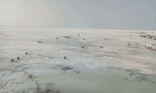 നോക്കെത്താ ദൂരത്തോളം വെളുത്ത മരുഭൂമി. ആകാശ വെള്ളയും മരുഭൂവെള്ളയും ഒന്നായപോലെ. സമുദ്രനിരപ്പിനേക്കാൾ താഴെ...