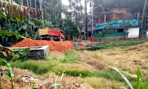 ഒഴിവുദിനത്തിൽ പാടം നികത്തുന്നു