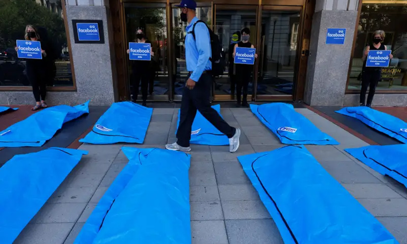 വാക്സിനെതിരെ വ്യാജവാർത്ത; ഫേസ്ബുക്ക് ഓഫീസിന് പുറത്ത് 'ബോഡി ബാഗുകൾ' നിരത്തി പ്രതിഷേധം