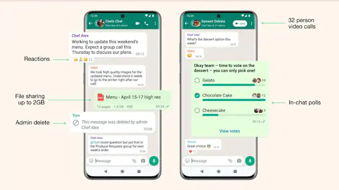 വാട്സ്ആപ്പ് കമ്യൂണിറ്റീസ് ഇങ്ങെത്തി; ഒപ്പം ഇൻ-ചാറ്റ് പോൾസ്, 32 പേഴ്സണ് വീഡിയോ കോളും