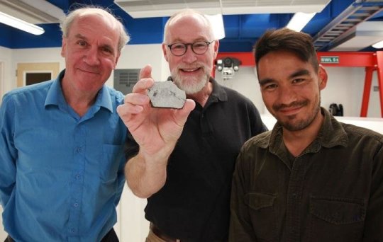 ചന്ദ്രനിലെ ശിലയുടെ സാമ്പിളുമായി ശാസ്ത്രജ്ഞരായ പോള് വാറന്, എഡേഡ് യങ്, ഇസാക്കു കോല്