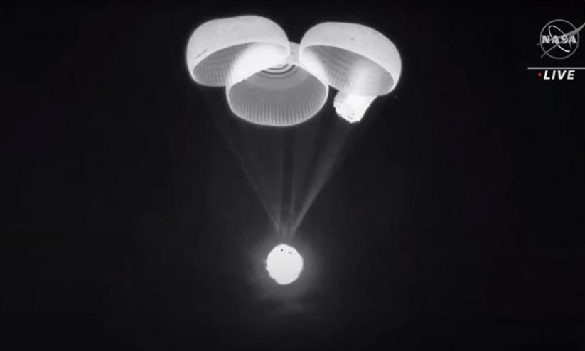 ഗൾഫ് ഓഫ് മെക്സിക്കോയിൽ പതിച്ച സ്പേസ് എക്സ് പേടകത്തിനുള്ളിൽ നിന്നും യാത്രികരെ കാത്തിരുന്ന റെസ്ക്യൂ ഷിപ്പുകൾ സുരക്ഷിതമായി തീരത്തെത്തിച്ചു. പേടകവും തിരികെയെത്തിച്ചു.