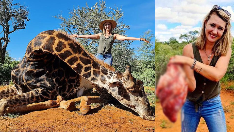 ജിറാഫിനെ കൊന്ന്, ഹൃദയം കൈയ്യിലേന്തി വേട്ടക്കാരിയുടെ പോസിങ്; 'പ്രണയദിന സമ്മാനമെന്ന്', വിവാദം