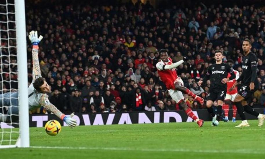 അതേ സമയം, ഒന്നാം സ്ഥാനക്കാരായ ആഴ്സണൽ വൻ വിജയവുമായി വീണ്ടും പോയിന്റ് അകലം ഉയർത്തി. വെസ്റ്റ്ഹാമിനെ ഒന്നിനെതിരെ മൂന്നു ഗോളിനാണ് ടീം ചുരുട്ടിക്കെട്ടിയത്. ആദ്യ പകുതിയിൽ പെനാൽറ്റി ഗോളിൽ മുന്നിൽനിന്ന വെസ്റ്റ്ഹാമിനെ നിരായുധരാക്കി രണ്ടാം പകുതിയിൽ ബുകായോ സാക, മാർടിനെല്ലി, എൻകെറ്റിയ എന്നിവർ ആഴ്സണലിന് ജയം സമ്മാനിച്ചു. ഗണ്ണേഴ്സ് ജയിച്ചതോടെ സിറ്റിയുമായി പോയിന്റ് അകലം എട്ടാക്കി ഉയർത്തി. വെസ്റ്റ് ഹാമാകട്ടെ, തോൽവിയോടെ തരംതാഴ്ത്തൽ ഭീഷണിക്കരികെയായി.