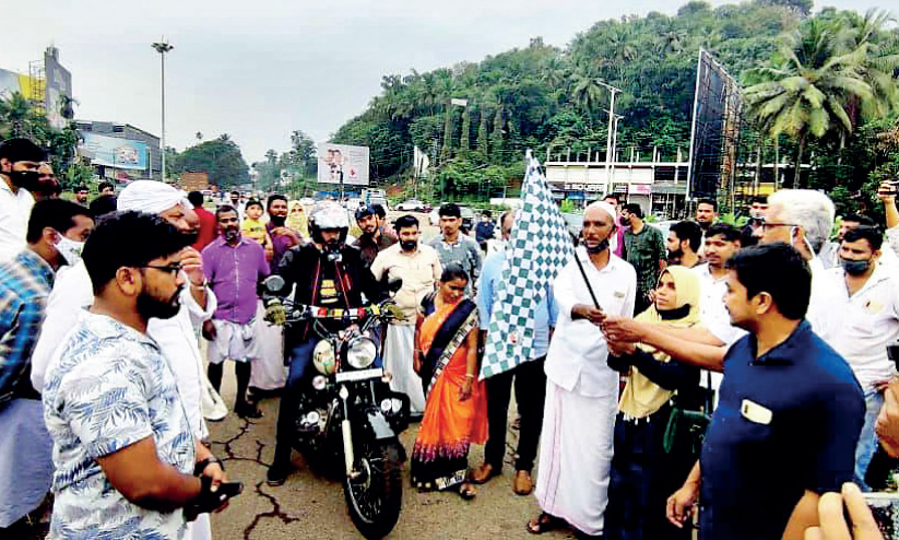 text_fieldsദിൽഷാദിെൻറ യാത്ര ചേലേമ്പ്ര ഗ്രാമപഞ്ചായത്ത് പ്രസിഡൻറ് ജമീല ഫ്ലാഗ് ഓഫ് ചെയ്യുന്നു