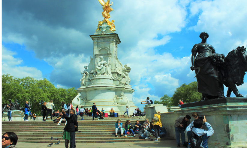 ബക്കിങ്ഹാം കൊട്ടാരത്തിനു മുന്നിലെത്തുമ്പോള് ഇളംവെയില് പരന്നൊഴുകിത്തുടങ്ങിയിരുന്നു. സഞ്ചാരികള് വന്നണയുന്നതേയുള്ളൂ. രാജ്ഞി കൊട്ടാരത്തിനകത്തില്ലെന്നു വെളിവാകുംവിധം പാലസിനുമുകളില് ബ്രിട്ടന്റെ യൂനിയന് ഫ്ലാഗ് പാറിക്കളിക്കുന്നുണ്ട്. മഹാറാണി അകംപൂകുമ്പോള് മുകളിലുയരുന്നത് മഞ്ഞയും ചുവപ്പും നിറങ്ങളിലുള്ള സവിശേഷമായ പതാകയാവും. നമുക്ക് അകത്തുകടക്കാനുള്ള അനുവാദമില്ലെന്നു സൂചിപ്പിച്ചുകൊണ്ട് മുഖ്യകവാടങ്ങള് രണ്ടും അടഞ്ഞുകിടക്കുകയാണ്.