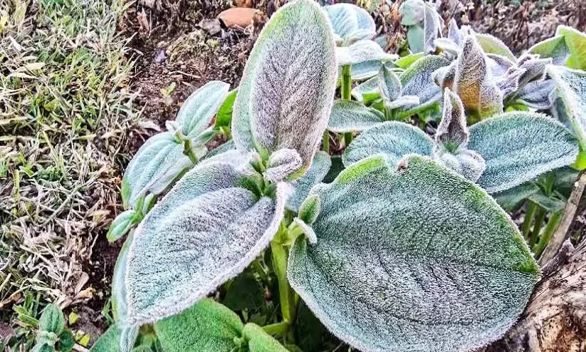 text_fieldsമൂന്നാറിലെ ചെടികളിൽ വീണ മഞ്ഞിൻ കണങ്ങൾ
