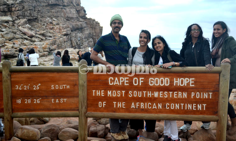 പലരും വിചാരിക്കുന്നതു പോലെ ‘കേപ്പ് ഓഫ് ഗൂഡ് ഹോപ്’ എന്നു വെച്ചാല് ആഫ്രിക്കയുടെ ഏറ്റവും തെക്കുഭാഗത്തുള്ള സ്ഥലമല്ല. ഗുഡ് ഹോപ്പില്നിന്നും ഏതാണ്ട് 150 കിലോ മീറ്റർ ദൂരെ കിഴക്കുമാറിയുള്ള സൂചീമുനമ്പ് അല്ലെങ്കില് ‘കേപ്പ് എഗലെസ്’ എന്ന ഭാഗത്തിനാണ് ആ സ്ഥാനം. ഗുഡ് ഹോപ്പ് മുനമ്പ് യഥാര്ത്ഥത്തില് ആഫ്രിക്കയുടെ ഏറ്റവും തെക്കുപടിഞ്ഞാറുള്ള ഭൂഭാഗമാണെന്നു പറയാം. അതെഴുതിക്കാണിച്ചുകൊണ്ടുള്ള ഒരു നീളന് പലക അവിടെ സ്ഥാപിച്ചിട്ടുണ്ട്. ദക്ഷിണ അക്ഷാംശവും പൂര്വ്വരേഖാംശവും തമ്മില് സമ്മേളിക്കുന്ന ഈ ഭൂമീബിന്ദുവില് വെച്ച് ചിത്രങ്ങളെടുക്കാന് നല്ല തിരക്കായിരുന്നു. കുറേ കാത്തുനിന്ന ശേഷം എനിക്കും കുറച്ചു ചിത്രങ്ങളെടുക്കാനായി.