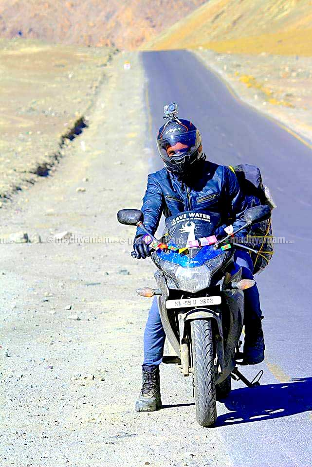 ലഡാക്കിലേക്ക് ബൈക്കിൽ തന്നെ പോകണമെന്ന് പറയുന്നതിനു കാരണങ്ങൾ പലതാണ്. പ്രധാനമായും നാലുവശങ്ങളിലെയും കാഴ്ചകൾ മറയില്ലാതെ കാണാം എന്നതുതന്നെ. വളഞ്ഞും പുളഞ്ഞും അതിലൂടെയുള്ള യാത്ര നൽകുന്ന വേറിെട്ടാരനുഭവം മറ്റൊരു കാരണമാണ്. കാറ്റായും തണുപ്പായും വെയിലായും കാലാവസ്ഥയുടെ ഭാവവ്യത്യാസങ്ങളെ ദേഹത്തിൽ അനുഭവിച്ചു പോകുന്നത് പറഞ്ഞറിയിക്കാനാവാത്ത വികാരമാണ്.