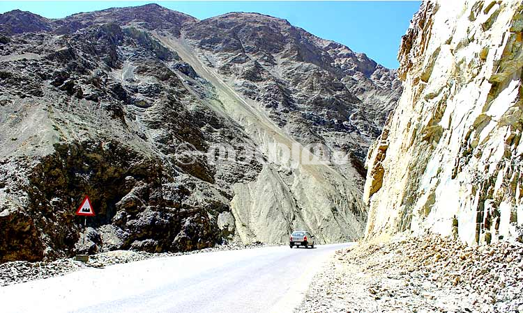 റോഡിെൻറ വശങ്ങളിൽ മഞ്ഞ് തീരെയുണ്ടായിരുന്നില്ല. ദൂരെ മാത്രം മഞ്ഞണിഞ്ഞ പർവതങ്ങൾ വെള്ളിപ്പാത്രം കണക്കെ തിളങ്ങി. തരക്കേടില്ലാത്ത റോഡായിരുന്നു േലയിേലക്ക്. വളവും ഇറക്കവും കയറ്റവും മാത്രം ശ്രദ്ധിച്ചാൽ മതി. ചില വളവുകളിൽ നല്ല ജാഗ്രത കാണിച്ചില്ലെങ്കിൽ നേരേ കൊക്കയിൽ നോക്കിയാൽ മതി. ലേഹ് എത്തുന്നതുവരെ വിവിധതരം പാറക്കെട്ടുകളുെട പ്രദർശനമായിരുന്നു. ഇന്നലെ സോനമാർഗ് പിന്നിട്ട് 125 കിലോ മീറ്റർ കഴിഞ്ഞ് കാർഗിലിലാണ് ഒരു പെട്രോൾ പമ്പ് കണ്ടത്. അതുകൊണ്ട് ഇന്നലെ രാത്രി തന്നെ ബൈക്കിൽ ഫുൾ ടാങ്ക് പെട്രോൾ അടിച്ചു വെച്ചിരുന്നു.