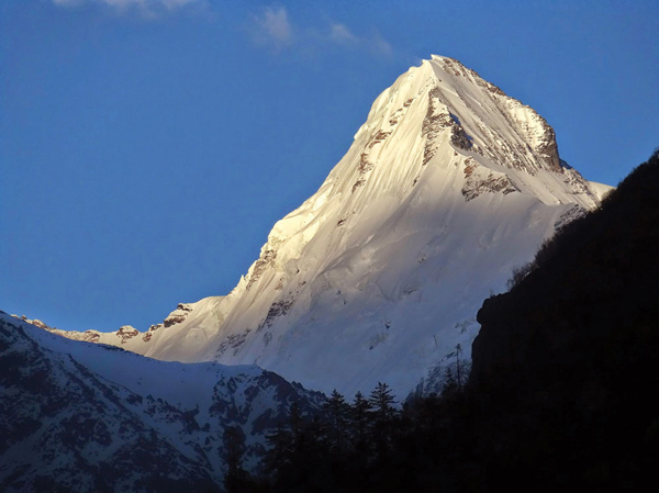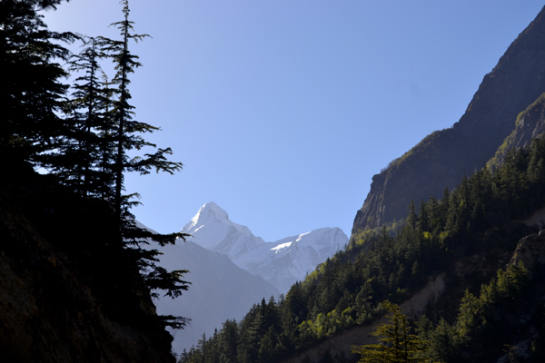 ആരോ വലിച്ചെറിഞ്ഞ പഞ്ഞിക്കഷണങ്ങളെന്നോണം ചില മേഘക്കീറുകള് ലക്ഷ്യബോധമില്ലാതെ അങ്ങുമിങ്ങും പറന്നുകളിച്ചു. മരമുകളില് നിന്നെങ്ങോ പേരറിയാത്ത കിളികള് ചിലയ്ക്കുകയോ പാടുകയോ ചെയ്തു. കാറ്റിനപ്പോഴും തണുപ്പുണ്ടായിരുന്നു. ഗാംഭീര്യത്തോടെ തലയാട്ടിനിന്ന ദേവദാരുക്കളും മന്ത്രാക്ഷരങ്ങളുടെ നിഗൂഹിതഭാരം പൂണ്ടുനിന്ന ഭോജപത്രങ്ങളും സര്വസാധാരണമായ ഫര്, പൈന് മരങ്ങളും ചുറ്റും നിറഞ്ഞപ്പോള് മുന്നോട്ടുള്ള പ്രയാണം വളരെ സുഖകരമായി. ദൂരെ വടക്കന് ചക്രവാളത്തില് തലപൊന്തിച്ചു നിന്നിരുന്ന സുദര്ശന പര്വതം ധവളാഭയാല് തിളങ്ങുന്നുണ്ടായിരുന്നു. മത്തുപിടിക്കുന്ന ഹിമാലയന് സൗന്ദര്യം അതിെൻറ ദിവ്യപ്രഭയാല് മനസ്സില് പ്രകമ്പനങ്ങള് തീർത്തു. ഒരു തുടക്കക്കാരെൻറ ആവേശത്തില് എെൻറ കണ്ണുകൾ പിന്വലിയാന് മടിച്ച്, അവയെ തൊട്ടുരുമ്മി നിന്നു. പക്ഷേ, പ്രകൃതിക്ക് ഒരുപോലെ തുടരുക സാധ്യമല്ലല്ലോ. സൂര്യന് മുകളിലേക്ക് പതുക്കെ അടിവെച്ചെത്തിയതോടെ അതുവരെ ഞങ്ങളെ പുണര്ന്നു നിന്നിരുന്ന പച്ചപ്പുതപ്പും അഴിഞ്ഞുവീണു. കൂടുതല് തുറസ്സായ ഇടങ്ങളിലേക്ക് ഞങ്ങള് നടന്നെത്തി. അതുവരേക്കും ഇടതൂര്ന്നു നിന്നിരുന്ന ഹരിതശോഭ മുറിഞ്ഞും വേറിട്ടും ഏതാനും പച്ചത്തുരുത്തുകളായി മാറിനിന്നു. സമുദ്രനിരപ്പില് നിന്നും ഞങ്ങള് അനുനിമിഷം മുകളിലേക്ക് കയറിക്കൊണ്ടിരിക്കുകയായിരുന്നു. ഉച്ചസ്ഥായിയിലുള്ള മര്മ്മരങ്ങളും പ്രകമ്പനങ്ങളും സൃഷ്ടിച്ചുകൊണ്ടൊഴുകിയിരുന്ന ഭാഗീരഥി മാത്രം ഈ യാത്രയിലുടനീളം ഒരു സ്ഥിരസാന്നിധ്യമായി ഞങ്ങളുടെ വലതുവശത്തുകൂടി താഴേക്ക് ഒഴുകിപ്പോയ്ക്കൊണ്ടിരുന്നു. അതിനിടെ കടൽനീലമണിഞ്ഞ ഒരു കൊച്ചരുവി മലമുകളില്നിന്നും കുതിച്ചെത്തി.