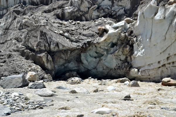 അതിനു താഴെത്തന്നെ ഇരുണ്ട വലിയൊരു ഗര്ത്തം കാണാം. അതിലൂടെയാണ് ഗംഗാനദി ഭാഗീരഥീരൂപിയായി പുറത്തേക്ക് പ്രവഹിക്കുന്നത്. കുത്തിയൊലിച്ചു വരുന്ന നദീശ്രേഷ്ഠയുടെ ഹുങ്കാരശബ്ദം ചുറ്റും പ്രതിഫലിക്കുന്നുണ്ട്. പണ്ടുകാലത്തെങ്ങോ ആട്ടിടയനായൊരു ബാലന് ഇവിടെനിന്ന് ഈ ഹിമാനീമുഖം നോക്കി നിന്നിരിക്കണം. അന്നവന് മനസ്സില് തോന്നിയ ചിത്രമായിരിക്കണം ഈ ഗോമുഖം. അതവന് പലരോടും പറഞ്ഞിരിക്കാം. അങ്ങനെ പതിഞ്ഞതാണീ ഗോമുഖമെന്ന പേര്. ഹിമക്കാറ്റില് ഗംഗയെനോക്കി പുഞ്ചിരിക്കാതിരിക്കാന് എനിക്കു കഴിഞ്ഞില്ല. ഭാഗീരഥി ഉരുകിവരുന്ന ഹിമാനിയിലേക്കാണിനി ഞങ്ങള്ക്ക് കയറേണ്ടത്. അപകടങ്ങള് പതിയിരിക്കുന്ന, രണ്ടു കിലോമീറ്ററുകളോളം നീളമുള്ള ആ ഹിമാനിയെ മുറിച്ചു കടന്നുവേണം തപോവനത്തിലേക്കുള്ള കൊടുംകയറ്റം കയറാൻ. ആ കഥ പിന്നീടൊരിക്കലാവാം.