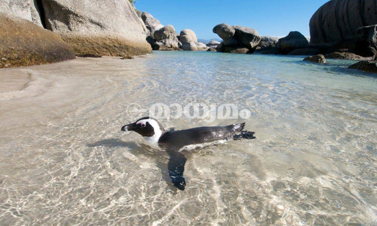 തെരുവിനു തൊട്ടുതന്നെയാണ് ബീച്ച്. പാറക്കൂട്ടങ്ങള്ക്കിടയിലൂടെ ഞാന് കടല്ത്തീരത്തേക്കു നടന്നു. നല്ല നനുത്ത പഞ്ചാരമണല് വിരിച്ചിട്ട തീരവും അതില് പതിയെ അലയടിക്കുന്ന നീലക്കടലും കണ്ണിനിമ്പമേറുന്ന കാഴ്ചയായിരുന്നു. അതിലും കൗതുകം തരുന്ന ദൃശ്യങ്ങളായിരുന്നു ആ മണല്പ്പരപ്പിലും പാറക്കൂട്ടങ്ങളിലൂടേയും തുള്ളിച്ചാടി നടന്നിരുന്ന പെന്ഗ്വിനുകള് തന്നത്. പെന്ഗ്വിനുകള്ക്ക് ശല്യമുണ്ടാക്കാത്ത വിധം സന്ദര്ശകര്ക്കു നടക്കാനായി, മരപ്പലകകളുപയോഗിച്ചുള്ള നടപ്പാതകള് പണികഴിപ്പിച്ചു വെച്ചിട്ടുണ്ട.് ഇടതടവില്ലാതെ കാമറ ചിമ്മിത്തുറക്കാന് ഇതിലും മെച്ചപ്പെട്ടൊരു സ്ഥലമുണ്ടെന്നു തോന്നുന്നില്ല. ഇതിനു മുമ്പ് ആസ്ട്രേലിയയിലെ ഫിലിപ്പ് ദ്വീപിലായിരുന്നു ഇത്രയധികം പെന്ഗ്വിനുകളെ ഒരുമിച്ചു കണ്ടത്. പെന്ഗ്വിനുകളുടെ കൂട്ടത്തില് തീരെ ചെറുതാണ് ആസ്ട്രേലിയൻ ഇനങ്ങള്. ആഫ്രിക്കന് പെന്ഗ്വിനുകള്ക്ക് ഏതാണ്ട് രണ്ടടിയിൽ കൂടുതൽ പൊക്കം കാണും. ഈ പറക്കാപ്പക്ഷികളുടെ ഒച്ച മാത്രം സഹിക്കില്ല. ഏതാണ്ടൊരു കഴുത അമറുന്നതുപോലെയൊക്കെ തോന്നും. അതുകൊണ്ടിതിനെ ‘കഴുതപ്പെന്ഗ്വിനുകള്’ എന്നൊരു വിളിപ്പേരുണ്ടത്രെ. നല്ല കറുത്തിരുണ്ട കാലുകളുള്ളതിനാല് കരിങ്കാലന് പെന്ഗ്വിനുകള് എന്നും ചിലര് വിളിക്കാറുണ്ട്.