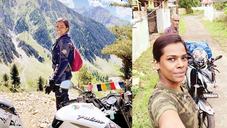 പാലക്കാട് കൽപാത്തി വെങ്കിേടശ്വര കോളനിയിലെ വീടിനു മുന്നിൽ അച്ഛൻ ലക്ഷ്മണനും മകൾ ലക്ഷ്മിയും. അരികിൽ പൾസൾ^220 ബൈക്ക്. ജാക്കറ്റും ഹെൽമറ്റുമൊക്കെയായി ഒരു റൈഡ് പോകാനുള്ള ഒര ുക്കമുണ്ട് കാഴ്ചയിൽതന്നെ. കൽപാത്തിയിൽനിന്ന് ലഡാക്ക് വഴി കശ്മീരിലേക്ക് ഒറ്റക്ക് ബൈക്ക് ഒാടിച്ചുപോകാൻ ഇറങ്ങുകയാണെന്ന് ആ മുറ്റത്തുനിന്ന് സമൂഹ മാധ്യമത്തിലൂടെ ലൈവായി ലക്ഷ്മി വെളിപ്പെടുത്തി. കേട്ടവർ ആദ്യമൊന്ന ് ഞെട്ടിയെങ്കിലും, ആ തീരുമാനത്തിന് സമൂഹ മാധ്യമം കട്ടക്ക് ഒപ്പംനിന്ന് ൈകയടിച്ചു. ആറു മണിക്കൂറിനുള്ളിൽ 10 ലക ്ഷം പേരാണ് ആ വിഡിയോ കണ്ടത്. പതിനായിരത്തിലേറെ പേർ ഷെയറും ചെയ്തു.