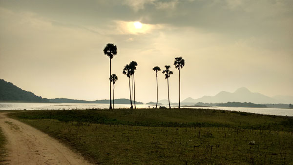 വണ്ടി മണ്പാതയിലൂടെ കരിമ്പനകള്ക്ക് സമീപത്തേക്ക് നീങ്ങിക്കൊണ്ടിരുന്നു. സൂര്യാസ്തമനത്തിന് തൊട്ടു മുമ്പായിട്ടാണ് കവയില് കാല്തൊട്ടത്. സൂര്യവെളിച്ചത്തില് ജലാശയം ചുവന്നു കിടക്കുകയാണ്. അങ്ങ് ദൂരെ കുന്നുകളും മലകളും നിഴലായി കാണാം. പ്രകൃതി പച്ചപ്പുല് വിതാനിച്ച നിലത്ത് ഞങ്ങള് കുറേ സമയം ഇരുന്നു.