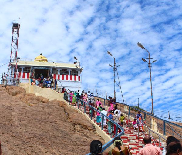 275 അടി ഉയരമുളള ഈ മലമുകളില് നിന്നാല് തിരുച്ചി പട്ടണം മുഴുവനും ദൃശ്യമാകും. ഇത്തരത്തിലുളള കാഴ്ചകള് അപൂര്വങ്ങളാണ്. മലയടിവാരത്ത് നിന്നും 417 തൂക്കായ പടികള് കയറി വേണം മലമുകളില് എത്താന്. ഇവിടെയുളള മനോഹരമായ 1000 കല്മണ്ഡപത്തില് വച്ചാണ് വിവാഹങ്ങള് നടത്തുന്നത്. ആറാം നൂറ്റാണ്ടില് മഹേന്ദ്ര പല്ലവന്റെകാലത്താണ് ഈ ക്ഷേത്ര നിര്മാണം നടന്നത്.