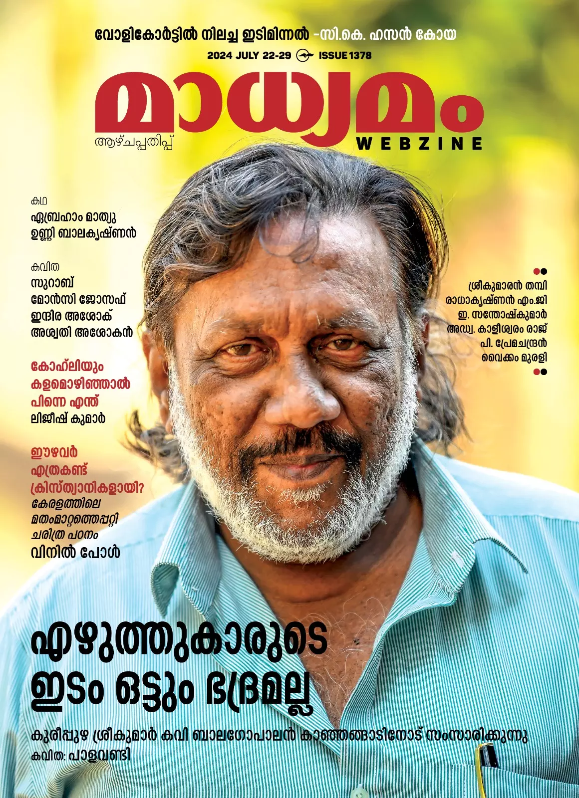 മലയാളത്തിന്റെ കാവ്യലോകത്ത് വേറിട്ടവഴികളിലൂടെ, നിലപാടുകളിൽ ഉറച്ചുനിന്ന് മുന്നോട്ടുപോകുന്ന കവി കുരീപ്പുഴ ശ്രീകുമാർ 70ാം വയസ്സിലേക്ക്...