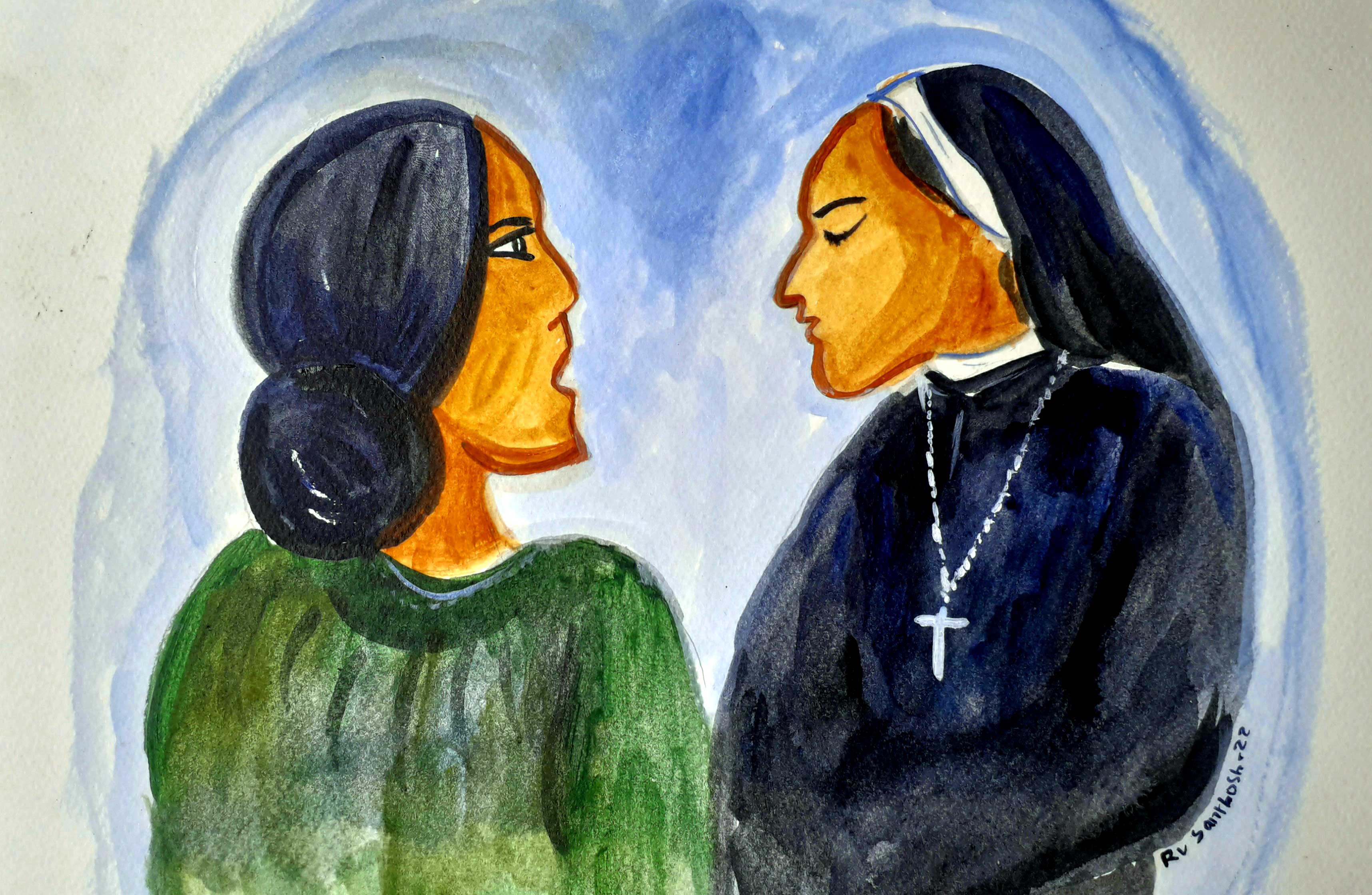 ജോമോന്റെ വീട്ടിലേക്ക് ഒറ്റത്തവണ മാത്രമേ സിസ്റ്ററമ്മ വന്നിട്ടുള്ളൂ. അന്നും നീല ട്രാവല് ബാഗുണ്ടായിരുന്നു. ഏതോ തീർഥാടനയാത്ര കഴിഞ്ഞ് ചുരം കയറിയെത്തിയ കെ.എസ്.ആര്.ടി.സി ബസില് സിസ്റ്ററമ്മ ഉണ്ടായിരുന്നു. കല്യാണം കഴിഞ്ഞ സമയമായിരുന്നതുകൊണ്ട് എന്റെ ബന്ധുക്കളെ സ്വീകരിക്കുന്നതിന് ജോമോന് വലിയ ഉത്സാഹമായിരുന്നു. ജീപ്പെടുത്ത് ബസ് സ്റ്റാന്ഡ് പരിസരത്തുനിന്നും കൂട്ടിക്കൊണ്ടുവന്നു. ജോമോനും ചാച്ചനും അമ്മച്ചിയും പെങ്ങളും പലതവണ മിണ്ടിയിട്ടും സിസ്റ്ററമ്മ ഒരു വാക്കുപോലും മിണ്ടിയില്ല. ചോദ്യങ്ങള്ക്ക് കടലാസില് ഉത്തരം എഴുതിനല്കി. അതിനുശേഷം എന്നോടും ഒന്നും മിണ്ടിയിട്ടില്ല. പൂർണമായ മൗനത്തിലേക്ക് പിന്വാങ്ങി.