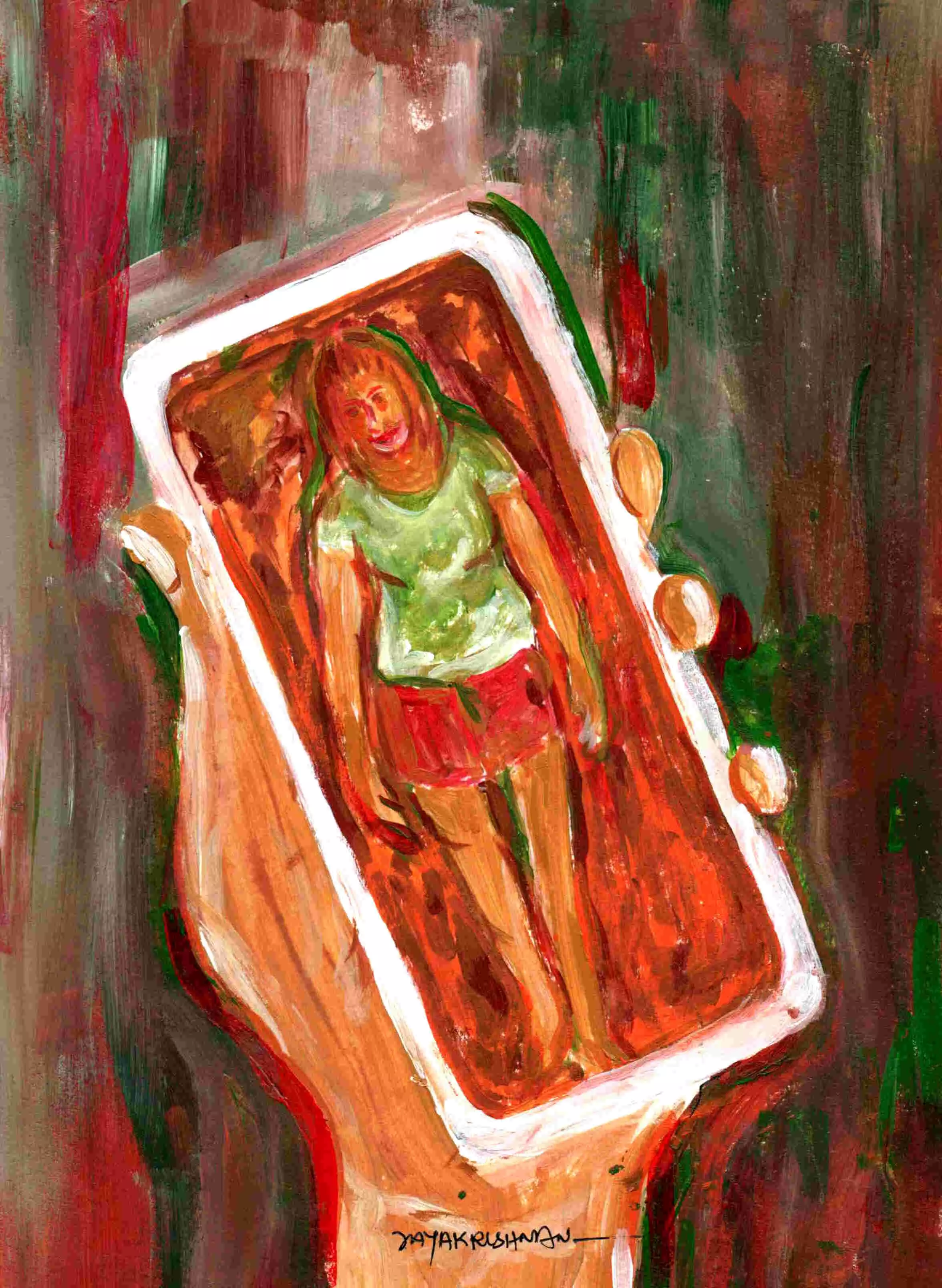 അമേരിക്കൻ ആക്സന്റിനോട് സാമ്യമുള്ള അവളുടെ കനേഡിയൻ മിണ്ടാട്ടം എനിക്കങ്ങോട്ട് രസിച്ച് വന്നതുകൊണ്ട് വൈകീട്ട് കാൾ വന്നപ്പോൾ പെട്ടെന്ന് കയറിയങ്ങെടുത്തു. എടുത്ത് കഴിഞ്ഞപ്പോഴാണ് വീഡിയോ ആണെന്ന് മനസ്സിലായത്. വാട്സ്ആപ് നമ്പർ കൊടുത്തപ്പോൾ അത് പ്രതീക്ഷിച്ചിരുന്നില്ല. ഭംഗിയായി വെട്ടി അഴിച്ചിട്ട സ്വർണനിറത്തിലുള്ള മുടിയാണ് ആദ്യം കണ്ണിൽപെട്ടത്. പ്രൊഫൈലിൽ കാണുന്നതുപോലെ തന്നെ വെളുത്ത് വൃത്താകൃതിയുള്ള കുട്ടിത്തമുള്ള മുഖം. ചിരിക്കുമ്പോൾ ഒരുവശത്ത് നുണക്കുഴി. സൂക്ഷിച്ച് നോക്കിയാൽ മുഖത്ത് ചുളിവുകൾ വന്നു തുടങ്ങിയിട്ടുണ്ടെന്നറിയാം. വല്ലാത്തൊരു ജാള്യത്തിൽ നെഞ്ചിൽനിന്ന് മാറിക്കിടന്ന സാരി വിടർത്തിയിട്ട് നര കയറിത്തുടങ്ങിയ മുടി മാടിയൊതുക്കി നോക്കുമ്പോൾ, മാറിടങ്ങളുടെ സുന്ദരമായ വിടവ് പ്രദർശിപ്പിക്കും വിധമുള്ള ജാക്കറ്റിട്ട് വശ്യമായി പുഞ്ചിരിച്ച് സ്ക്രീനിനപ്പുറത്തിരിക്കുന്നു എന്റെ പുതിയ കൂട്ടുകാരി.