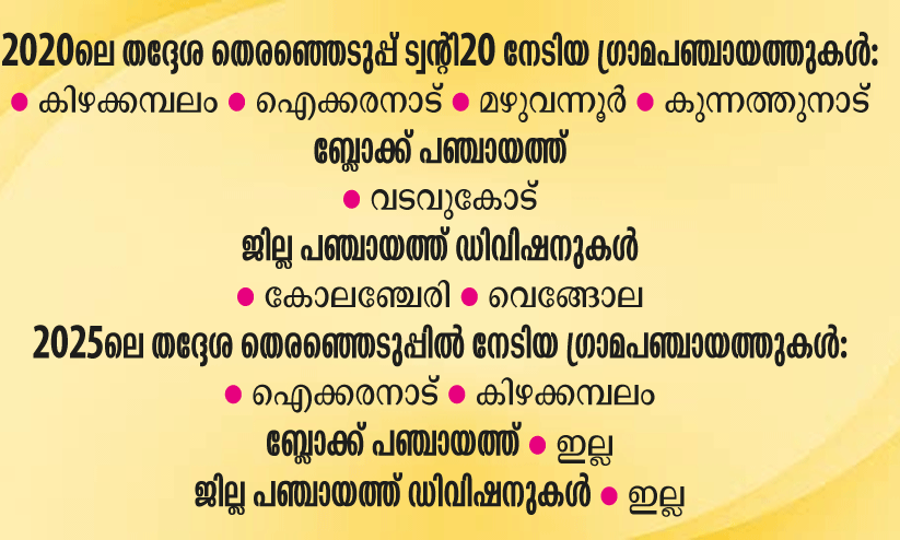 എറണാകുളം ജില്ലയിലെ കിഴക്കമ്പലം കേന്ദ്രീകരിച്ച് പ്രവർത്തിക്കുന്ന, കിെറ്റക്സ് ഗ്രൂപ് മേധാവി സാബു എം. ജേക്കബ് നയിച്ച ട്വന്റി20 പാർട്ടിക്ക് ഇത്തവണത്തെ തെരഞ്ഞെടുപ്പിൽ ചില തിരിച്ചടികൾ നേരിട്ടു. അവയെ വിശകലനം ചെയ്യുകയാണ് ലേഖകൻ. ‘‘കുന്നത്തുനാട്ടിൽ ട്വന്റി 20 നേരിട്ട തിരിച്ചടിക്ക് പിന്നിൽ സംസ്ഥാന രാഷ്ട്രീയത്തിനെതിരായ ഭരണവിരുദ്ധ വികാരം മാത്രമല്ല, പണവും മദ്യവുമാണ്’’ –ട്വന്റി20 പ്രസിഡന്റ് സാബു എം. ജേക്കബ് പറഞ്ഞ വാക്കുകളാണിത്. തദ്ദേശഫലം പുറത്തുവന്നശേഷം നടത്തിയ വാർത്താസമ്മേളനമായിരുന്നു രംഗം. സാബു എം. ജേക്കബ് ഇങ്ങനെയൊക്കെ പറയുമ്പോഴും ഈ തദ്ദേശ സ്വയംഭരണ തെരഞ്ഞെടുപ്പ് ഫലം സംഘടനയുടെ അവകാശവാദങ്ങളുടെ...
