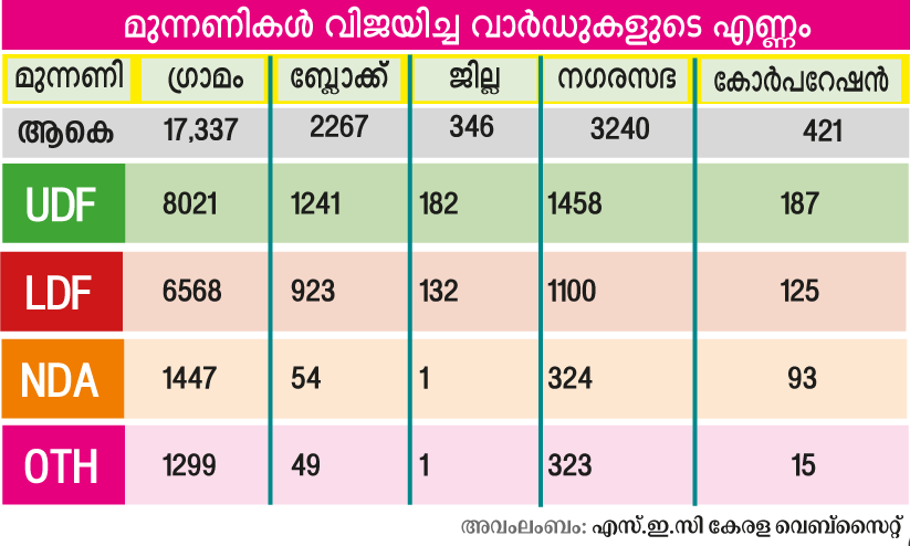 കേരളപ്പിറവി മുതൽ സംസ്ഥാന രാഷ്ട്രീയത്തിന്റെ മുഖ്യ മുഖമുദ്ര കാലഹരണപ്പെട്ടു എന്നതാണ് ഇപ്പോഴത്തെ തദ്ദേശ തെരഞ്ഞെടുപ്പിന്റെ പ്രധാന ഫലശ്രുതി. കോൺഗ്രസിന്റെയും കമ്യൂണിസ്റ്റ് പാർട്ടികളുടെയും നേതൃത്വത്തിൽ ദശാബ്ദങ്ങളോളം തുടർന്ന ഇരുധ്രുവ രാഷ്ട്രീയ വ്യവസ്ഥയാണ് ചരമമടഞ്ഞ ആ മുഖമുദ്ര. കഴിഞ്ഞ 10 വർഷമായി ബി.ജെ.പിയിലൂടെ ഇന്ത്യൻ രാഷ്ട്രീയത്തിൽ ആധിപത്യം വഹിക്കുന്ന ഭൂരിപക്ഷ മതാധിഷ്ഠിത രാഷ്ട്രീയത്തിന്റെ അവസാനത്തെ ബാലികേറാമലയെന്ന സ്ഥാനം കേരളത്തിന് പൂർണമായും നഷ്ടപ്പെട്ടതിന്റെ ഏറ്റവും ഉച്ചത്തിലുള്ള പ്രഖ്യാപനംകൂടിയായി ഈ തെരഞ്ഞെടുപ്പ് ഫലം. ഒപ്പം കേരള രാഷ്ട്രീയത്തിലെ ഏറ്റവും നിർണായക ശക്തിയെന്ന പദവി ന്യൂനപക്ഷ രാഷ്ട്രീയ കക്ഷികളിൽനിന്ന് ഹിന്ദുത്വ രാഷ്ട്രീയ കക്ഷിയിലേക്ക് നീങ്ങുന്നതിന്റെയും പുതിയ തെളിവായിരിക്കുന്നു. ഇക്കുറി തിരുവനന്തപുരത്ത് ഒഴികെ മറ്റിടങ്ങളിൽ വലിയ മുന്നേറ്റം കൈവരിക്കാനായില്ലെങ്കിലും കേരളം ആര് ഭരിക്കണമെന്ന് തീരുമാനിക്കാനുള്ള ശേഷി ഇന്ന് ഏറ്റവും അധികം കൈവശമുള്ളത് ബി.ജെ.പിക്ക് തന്നെയായിട്ടുണ്ട്.