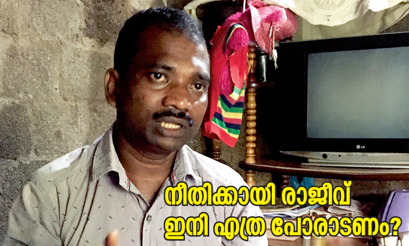 സ്കൂൾ വിദ്യാഭ്യാസം കുറവാണെങ്കിലും തനിക്കും സമൂഹത്തിനും സാമൂഹികനീതി കിട്ടണം എന്നാഗ്രഹിക്കുകയും അതിനായി അധികാര കേന്ദ്രങ്ങളെ ചോദ്യംചെയ്യാൻ രാജീവ് നിയമപരമായി നീങ്ങുന്നു. മൂത്തമകൻ സി.ബി.എസ്.ഇയിൽ 95 ശതമാനം മാർക്കോടെയാണ് എസ്.എസ്.എൽ.സി പാസായത്. മകെൻറ സഹായത്താലാണ് പരാതിപോലും എഴുതുന്നതെങ്കിലും രാജീവ് തനിക്കെതിരായ അനീതികളെ ഏതറ്റംവരെ പോയും ചോദ്യം ചെയ്യും. ഇത്തരത്തിൽ പല സർക്കാർ ഉദ്യോഗസ്ഥർക്കും നടപടി വാങ്ങിെക്കാടുത്തതിന് മാസങ്ങളോളം പൊലീസ് പീഡനത്തിനിരയാകേണ്ടി വന്നു. ജോലി പോയി, പട്ടിണിയായിട്ടും തെൻറ നിയമപോരാട്ടത്തിൽ ഉറച്ചു നിന്ന രാജീവിന് ഒടുവിൽ ഹൈകോടതി ഇടപെടലിലൂടെ നീതി ലഭിച്ചു. തന്നെ അകാരണമായി പീഡിപ്പിച്ച തെൻമല സി.െഎക്ക് സസ്പെൻഷൻ വാങ്ങിക്കൊടുക്കാൻ രാജീവിന് വേണ്ടി വന്നത് ഏഴു മാസത്തിലേറെ നീണ്ടുനിന്ന പോരാട്ടവും പട്ടിണി ഉൾപ്പെടെയുള്ള ത്യാഗവും.