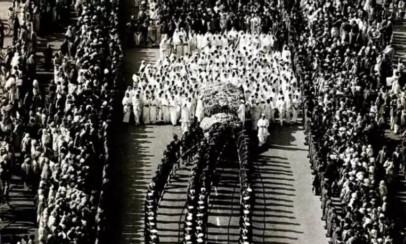 ഗാന്ധിജിയുടെ സംസ്കാര ചടങ്ങിന് ഒഴുകിയെത്തിയ ജനക്കൂട്ടം
