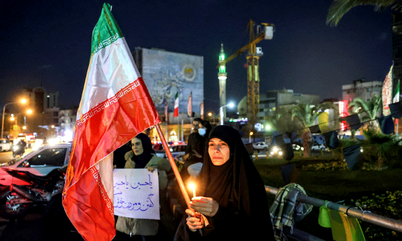 തെഹ്റാനിൽ ഇറാൻ അനുകൂല പ്രകടനത്തിനിടെ മെഴുകുതിരി കത്തിച്ചു പിടിച്ച വനിത