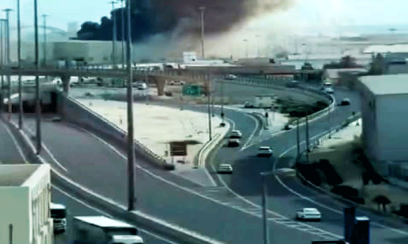 ബഹ്റൈനിലെ മിനാ സൽമാൻ തുറമുഖത്ത് ഇറാൻ ആക്രമണത്തെ തുടർന്ന് പുക ഉയർന്നപ്പോൾ