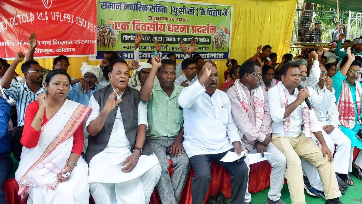 ഏകസിവിൽ കോഡിനെതിരെ വിവിധ ഗോത്ര വിഭാഗങ്ങളുടെ നേതൃത്വത്തിൽ റാഞ്ചിയിലെ രാജ് ഭവന് സമീപത്ത് നടന്ന ധർണ