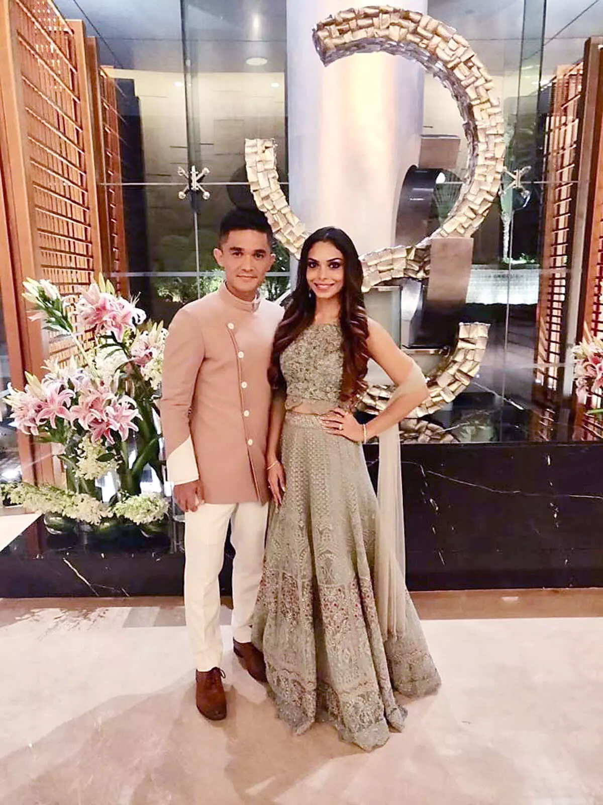 ''സർ, എനിക്ക് നിങ്ങളുടെ മകളെ ഇഷ്ടമാണ്. അവൾക്ക് എന്നെയും ഇഷ്ടമാണെന്നാണ് കരുതുന്നത്...'' ''ആ...ആ...ശരി...ശരി'' -ഇതും പറഞ്ഞ് അദ്ദേഹം ബാത്ത്റൂമിലേക്ക് പോയി. തിരിച്ചുവരുേമ്പാൾ വിവാഹജീവിതത്തിലേക്കുള്ള സെലക്ഷൻ ഉത്തരവ് അദ്ദേഹം വാക്കാൽ നൽകി. അങ്ങനെ 2017 ഡിസംബർ നാലിന് ഇരുവരും വിവാഹിതരായി.തെൻറ കരിയറിലെ നേട്ടങ്ങൾക്ക് പിന്നിൽ പ്രചോദനമായി എന്നും സോനം കൂടെയുണ്ടായിരുന്നത് ഛേത്രി നന്ദിയോടെ ഒാർക്കുന്നു. ''ഞാൻ ആരുമല്ലാതിരിക്കുേമ്പാൾ, അഞ്ചു കാശ് കൈയിലില്ലാതിരുന്നിട്ടും അവൾ കൂടെയുണ്ടായിരുന്നു. എെൻറ ആദ്യ ജയത്തിലും തോൽവിയിലും അവൾ കൂടെയുണ്ടായിരുന്നു. ഞാൻ ക്യാപ്റ്റനായപ്പോഴും അവളവിടെത്തന്നെയുണ്ടായിരുന്നു. അവളില്ലാതെ എനിക്കെെൻറ കഴിഞ്ഞകാലം സങ്കൽപിക്കാനാവില്ല; എെൻറ വരുംകാലവും. ഇപ്പോഴും എെൻറ വലിയ ആരാധികയെന്നാണ് അവൾ സ്വയം വിശേഷിപ്പിക്കുന്നത്. വിസ്മയത്തോടെയാണ് ഞാനവളെ കാണുന്നതെന്ന് അവൾക്കുമറിയാം...'' -ഛേത്രി കുറിച്ചു.