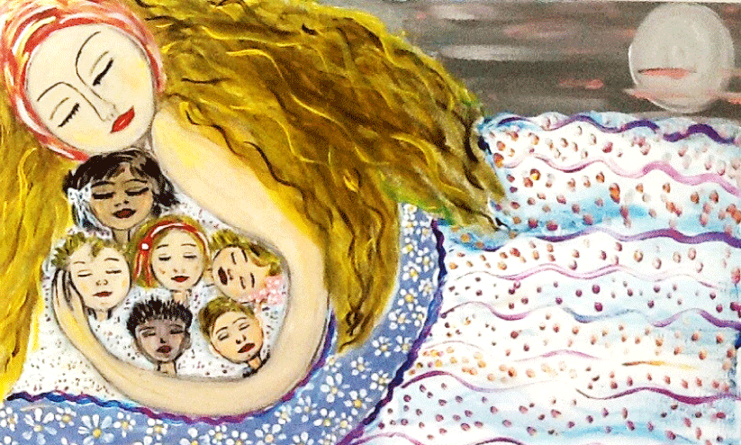 പള്ളിയിൽ തണുത്തുവിറച്ച് അവളും കുട്ടികളും ഇരുന്നു. മഴ പെയ്യുകയാണ്.