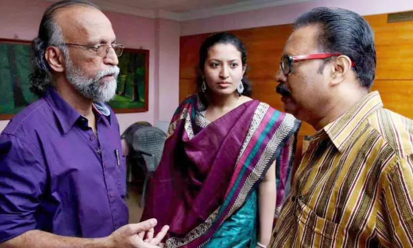 ജോർജ്, മകൾ ഹരിത എന്നിവർ സാംസ്കാരിക പ്രവർത്തകനും എഴുത്തുകാരനുമായ കെ.എൻ. ഷാജിക്കൊപ്പം