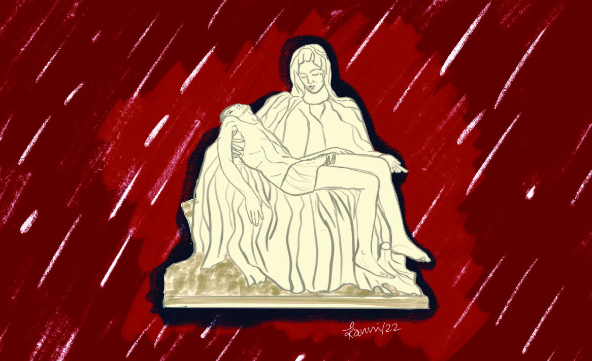''ഇങ്ങനെയല്ല. പിയാത്തയിലെ മാതാവിനെപ്പോലെ. എന്നെ അടങ്ങലം മടിയിലേക്ക് ചേർത്തുപിടിക്ക്.''