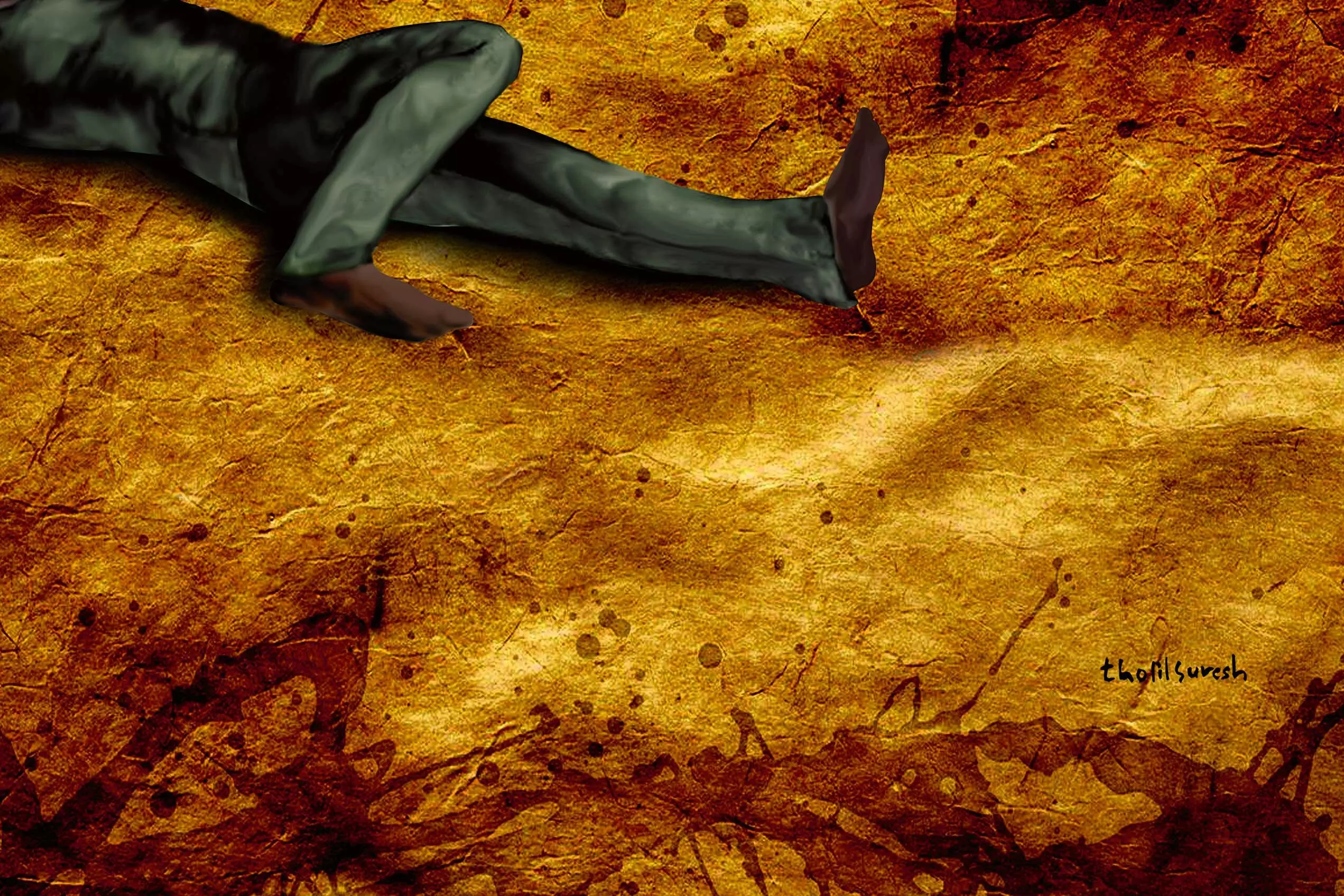 വേറൊരു പൊലീസുകാരൻ മദന്ലാലിന്റെ കാൽപാദങ്ങളിൽ ആഞ്ഞു തല്ലി. അവന്റെ കണ്ണ് കലങ്ങി. വേദനകൊണ്ട് കഴുത്തിലെ ഞരമ്പുകൾ എഴുന്നുവന്നു. ഉപ്പൂറ്റിയിൽ ആയിരുന്നു അടുത്ത പ്രഹരം.
