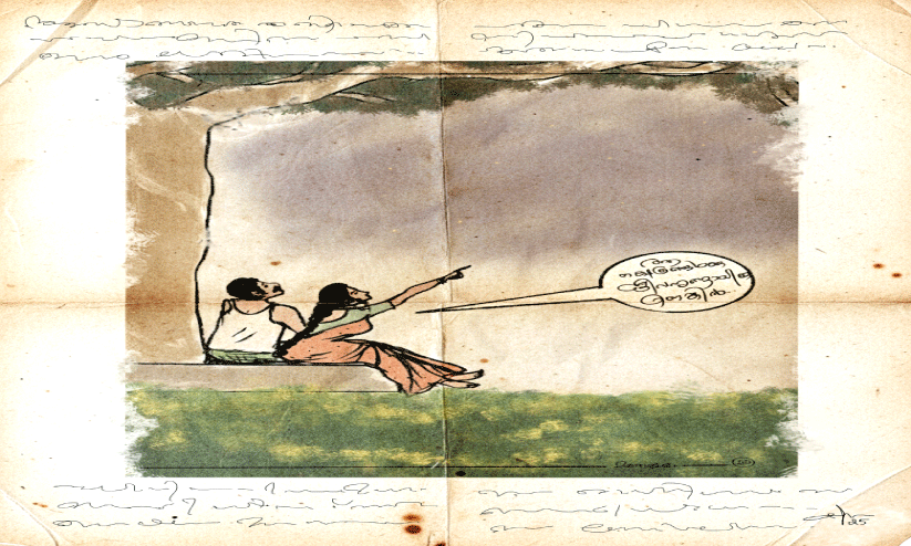 മറിച്ചു നോക്കിയിരുന്നെങ്കിലും അതില് എന്തെങ്കിലും പ്രത്യേകത എന്റെ ശ്രദ്ധയില്പ്പെട്ടിരുന്നില്ല. ബാബു തന്റെ കൈയിലെ ‘നാളീകം’ എറിഞ്ഞുതന്നു. വീണ്ടും മറിച്ചുനോക്കിയിട്ടും എനിക്കത് കണ്ടുപിടിക്കാനായില്ല.