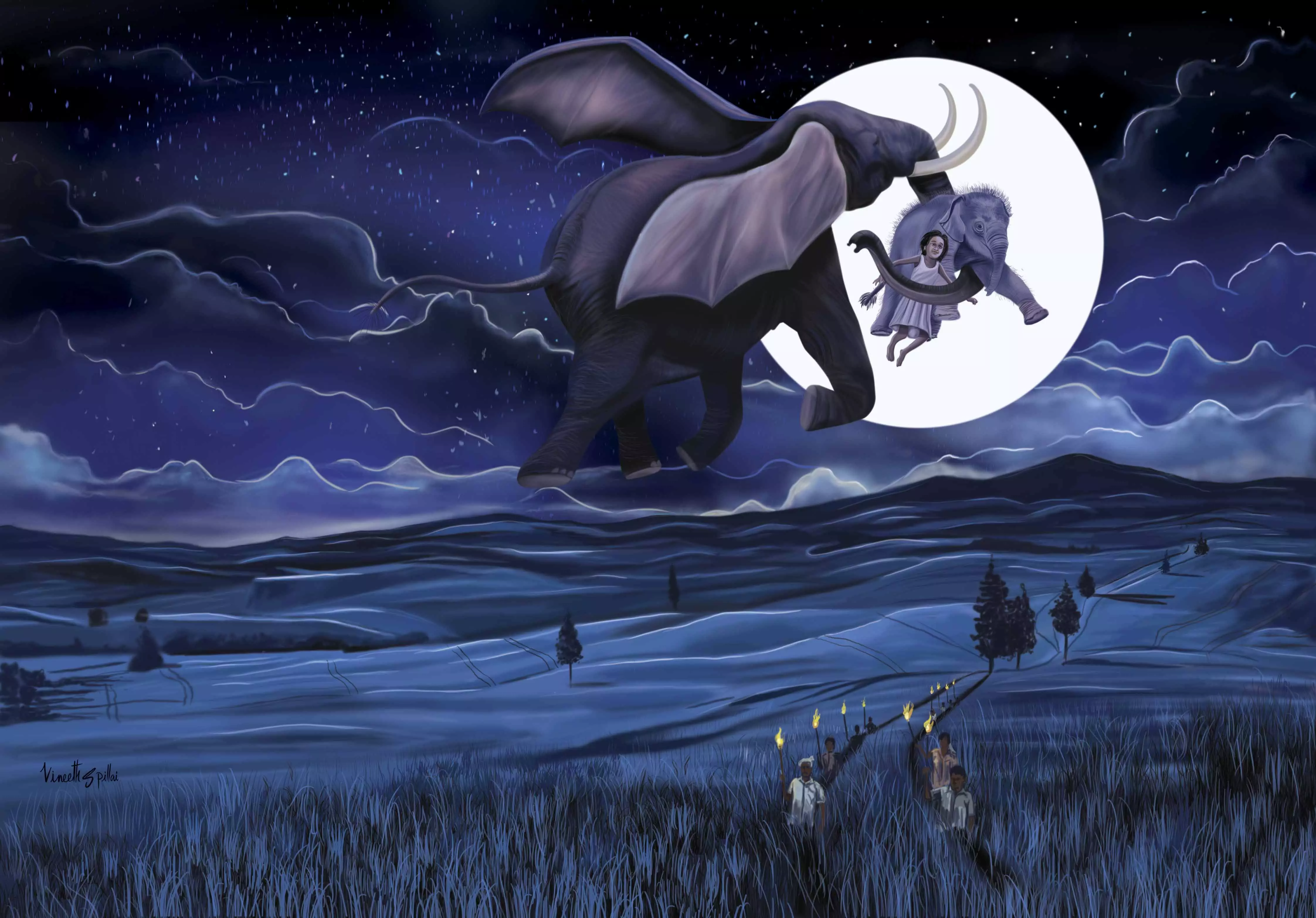 ‘‘ആനകളുടെ ദേശാടനകാലം തുടങ്ങി’’, അമ്മ പറഞ്ഞു. അതുകേട്ട് അച്ഛൻ വേഗം എഴുന്നേറ്റ് ഷർട്ടും എടുത്തിട്ട് പുറമേക്കു നടന്നു; കൂടെ ഞാനും. പകൽ മുഴുവനും ഒരിടത്ത് വിശ്രമിച്ചതിനുശേഷം രാത്രിയാണ് ദേശാടനയാനകൾ സഞ്ചരിക്കുക. ഓരോ കൂട്ടത്തിലും കൊമ്പന്മാരും പിടികളും കുട്ടിയാനകളും കാണും. ആ രാത്രിയും ആനക്കൂട്ടം അതുവഴി വന്നു. നേരിയ നിലാവുള്ള, നിറയെ നക്ഷത്രങ്ങളുള്ള രാത്രിയിൽ നോക്കെത്താദൂരത്തോളം പരന്നുകിടക്കുന്ന റാഗി പാടങ്ങളിലെ കതിർക്കുലകളും അകത്താക്കിക്കൊണ്ട് അവ മുന്നോട്ടുപോയിക്കൊണ്ടിരുന്നു.