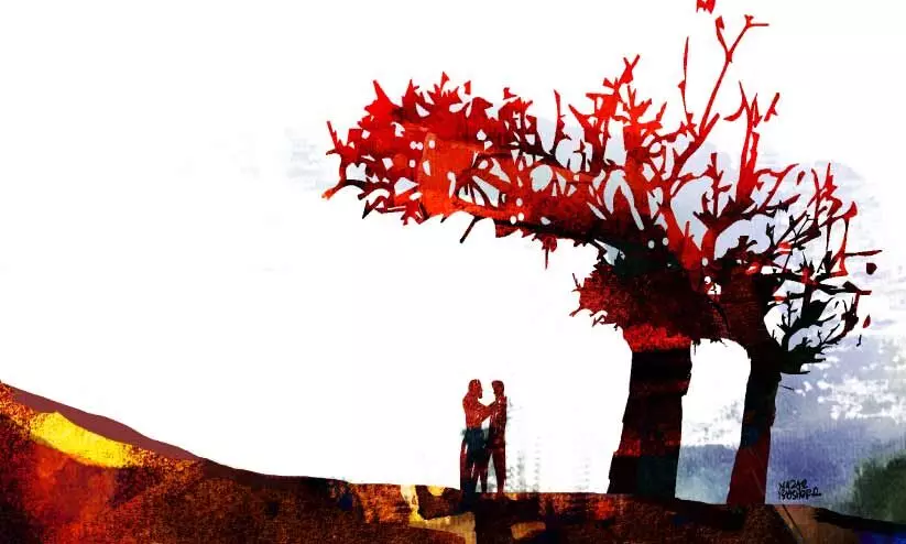 പുറത്തുനിന്നുള്ള സ്പർശം കാടിനെ ഒന്നുണർത്തി. എത്രയോ കാലത്തിനു ശേഷമാകും പ്രണയത്തിന്റെ ഗന്ധവുംകൊണ്ട് ആരെങ്കിലും വരുന്നത്. പോലീസ് ജീപ്പുകളുടെ ഇന്ധനം കത്തുന്ന മണം. അതുമല്ലെങ്കിൽ വെടിമരുന്നിന്റെ മണം. കൊല്ലങ്ങളായി ഇതെല്ലാമാണ് കാടു കയറി വരിക.