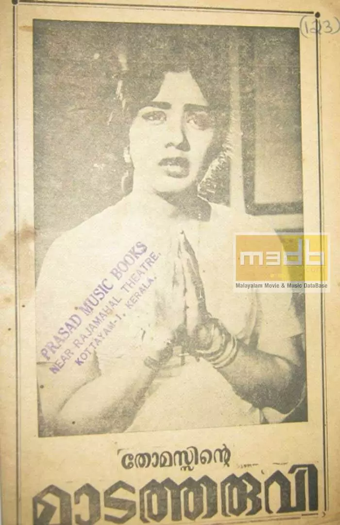 മാടത്തരുവി കൊലക്കേസ് സംഭവകഥയുടെ പശ്ചാത്തലത്തിൽ സംവിധായക നിർമാതാവായ പി.എ. തോമസും ഒരു സിനിമ നിർമിക്കുകയുണ്ടായി. അതിന് അദ്ദേഹം 'മാടത്തരുവി' എന്നാണു പേര് നൽകിയത്. ജഗതി എൻ.കെ. ആചാരി ഈ സിനിമക്ക് തിരക്കഥയും സംഭാഷണവും രചിച്ചു. കെ.പി. ഉമ്മർ, തിക്കുറിശ്ശി, കമലാദേവി, ഉഷാകുമാരി, സി.ഐ. പോൾ, അടൂർ ഭാസി, ശാന്തി, സുകുമാരി, ടി.ആർ. ഓമന തുടങ്ങിയവരായിരുന്നു 'മാടത്തരുവി'യിലെ അഭിനേതാക്കൾ. നിർമാതാവായ പി.എ. തോമസ് തന്നെ ചിത്രം സംവിധാനം ചെയ്തു. 'മൈനത്തരുവി കൊലക്കേസ്' എന്ന ചിത്രത്തിന് വയലാർ ഗാനരചന നിർവഹിച്ചതുകൊണ്ട് പി.എ. തോമസ് ഈ ചിത്രത്തിന്റെ പാട്ടുകൾ എഴുതാൻ വീണ്ടും പി. ഭാസ്കരനെ ക്ഷണിച്ചു. അങ്ങനെ ഒരിക്കൽകൂടി പി. ഭാസ്കരനും ബി.എ. ചിദംബരനാഥും തോമസ് പിക്ചേഴ്സിന്റെ സിനിമയിൽ ഒരുമിച്ചു. ചിത്രത്തിൽ അഞ്ചു ഗാനങ്ങൾ ഉണ്ടായിരുന്നു. യേശുദാസും ജയചന്ദ്രനും പി. ലീലയും ബി. വസന്തയും ഹേമയും പാടി. യേശുദാസ് ഹേമയുമായി ചേർന്നു പാടിയത് ''മാടത്തരുവിക്കരയിൽ വന്നൊരു മാടത്തക്കിളിയെവിടെപ്പോയ് /പൊട്ടിക്കരയും കൊച്ചരുവീ നീ/ സത്യം പറയാമോ..?'' എന്ന ഗാനമായിരുന്നു. യേശുദാസ് ബി.വസന്തയോടൊപ്പം പാടിയ ''കരുണാകരനാം ലോകപിതാവേ/കനിവിന്നുറവിടമേ/തിരുകൃപയാലീ പനിനീർവനിയിൽ /കുരുവികളായ് ഞങ്ങൾ'' എന്ന ഗാനവും ബി. വസന്ത പാടിയ ''കന്യകാമാതാവേ നീയല്ലാതേഴ തൻ കണ്ണീർ തുടയ്ക്കുവതാരോ.../ സ്വർഗജനനിയാമമ്മയല്ലാതെന്റെ ദുഃഖങ്ങൾ നീക്കുവതാരോ...'' എന്ന ഗാനവും പ്രാർഥനാഗീതങ്ങൾ എന്ന നിലയിൽ നന്നായി. ''ശക്തി നൽകുക താത നീയെൻ /മുൾക്കിരീടം പേറുവാൻ/ കൂരിരുളിൻ കാൽവരിയിൽ / കുരിശുമേന്തി നീങ്ങുവാൻ'' എന്ന ദുഃഖഗാനം ജയചന്ദ്രനാണ് പാടിയത്. ''പുഞ്ചിരിചുണ്ടിൽ -പ്രണയ / മുന്തിരി കയ്യിൽ /ആനന്ദമണിവേദിയിൽ -ഞാൻ /ഗായികയല്ലോയെന്നും... /കാരുണ്യമലർ പൂത്തുവരും / താമരയാറ്റിൽ രാഗമധു തേടിയെത്തിയ/ രാജഹംസം ഞാൻ...'' എന്ന പാട്ട് പി.ലീലയാണ് പാടിയത്.