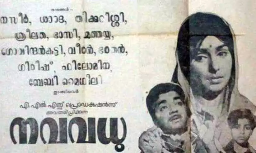 ‘‘രാത്രിയാം രംഭയ്ക്കു രാജ്യം മുഴുവൻ/ രഹസ്യകാമുകന്മാർ/ രാജഹംസങ്ങളെ ദൂതിനയയ്ക്കും/ രഹസ്യകാമുകന്മാർ/ കാൽച്ചിലങ്ക കിലുങ്ങുമ്പോൾ/ കടാക്ഷമുനകൾ ചലിക്കുമ്പോൾ/ വെള്ളിത്തളികയിൽ സോമരസം/ തുള്ളിത്തുളുമ്പുമ്പോൾ/ അവരണിയും പുളകമല്ലോ/ അക്കരപ്പച്ചയിലെ പൂക്കൾ...’’ ഇങ്ങനെ തുടരുന്ന ഈ മദാലസ ഗാനവും ഭാവനയുടെ ഉത്തുംഗസീമകളെ തലോടുന്നില്ല. 1971 ഏപ്രിൽ ഒമ്പതിനാണ് ‘നവവധു’ എന്ന ചിത്രം തിയറ്ററുകളിൽ എത്തിയത്.