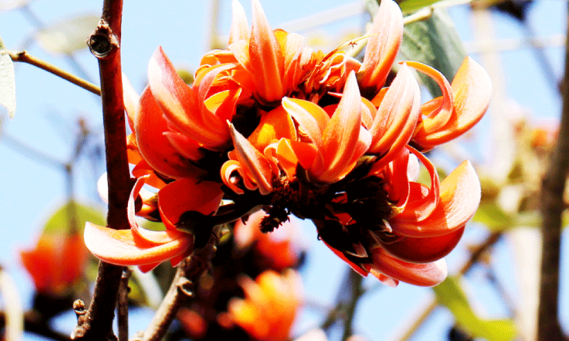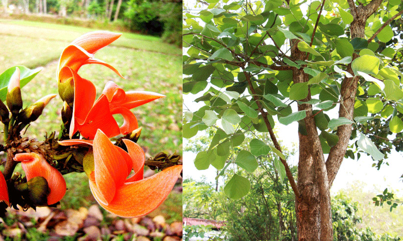 ജ്വാലമരം, പ്ലാശ്, ബ്രഹ്മവൃക്ഷം, വഹ്നിച്ചമത, വനജ്വാല എന്നീ പേരുകളിലും അറിയപ്പെടുന്ന ഈ വൃക്ഷത്തിന്റെ ശാസ്ത്രീയനാമം Butea monosperma എന്നാണ്. പതിനെട്ടാം നൂറ്റാണ്ടിൽ ജീവിച്ചിരുന്ന, ലണ്ടനിലെ ക്യൂ ഗാർഡന്റെ ഡയറക്ടർ ആയിരുന്ന മൂന്നാമത്തെ ബ്യൂട്ട് പ്രഭു (3rd Earl of Bute) ജോൺ സ്റ്റുവാർട്ടിനോടുള്ള (John Stuart ) ആദരസൂചകമായാണ് ബ്യൂട്ടിയ എന്ന ജനുസ്സ് നാമം. ഒരു വിത്ത് മാത്രമുള്ളത് എന്നാണ് സ്പീഷീസ് പദത്തിനർഥം. പയറുവർഗ ചെടികളുടെ കുടുംബമായ Fabaceae സസ്യകുടുംബത്തിൽ ഉൾപ്പെടുന്നു. Flame of the Forest എന്നാണ് ഇംഗ്ലീഷിൽ അറിയപ്പെടുന്നത്. കിംശുകഃ, പർണഃ, പലാശഃ, യാജ്ഞികം, ഹരിണീ എന്നിവയാണ് സംസ്കൃതനാമങ്ങൾ.
